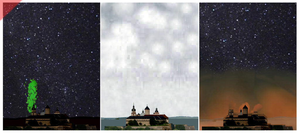 Von links nach rechts (die drei Haupt-Phasen des Luftangriffs):