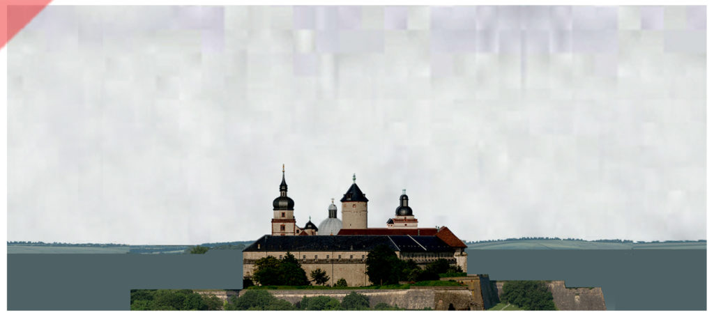 Im Vordergrund ist jeweils die Silhouette der „Festung Marienberg“ zu sehen.
