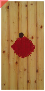 Mit dem Visualisieren des Holzbodens in der damaligen Nürnberger Gefängnisturnhalle (Größe des Werkes: 110 x 60 cm; Acrylfarbe und Autolack auf Fichtenholz) erinnern wir aber daran, dass die Urteilsvollstreckungen dort in mehreren Fällen aus dem Ruder liefen. Der Holzboden bestand nach unseren Recherchen aus Fichtenholzbrettern. Darauf ist das Resultat mehrerer misslungener Erhängungen zu sehen – Blut und Körperausscheidungen.