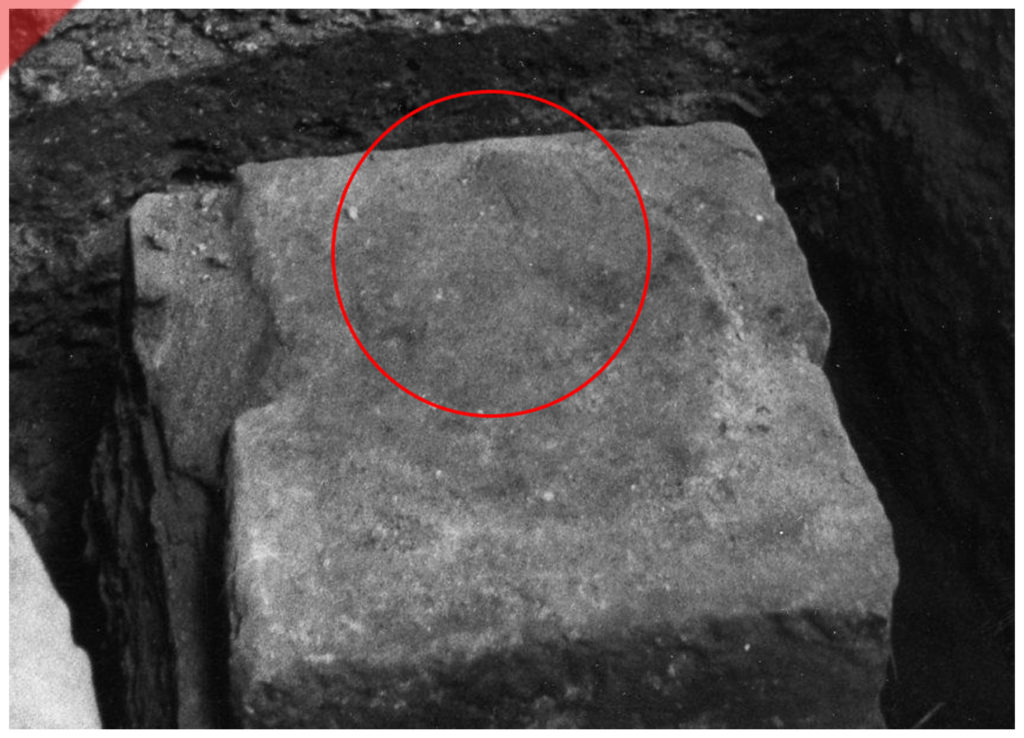 base-of-column-1986-marked-davids-star-discovered-found-synagogue-Nuremberg-Hauptmarkt-1349-Pogrom-hoch-Fundament-Säule-1986-entdeckt-ausgegraben-Synagoge-Davidsstern-eingemeißelt-original-Nürnberg-Hauptmarkt-1349-Pogrom-Frauenkirche