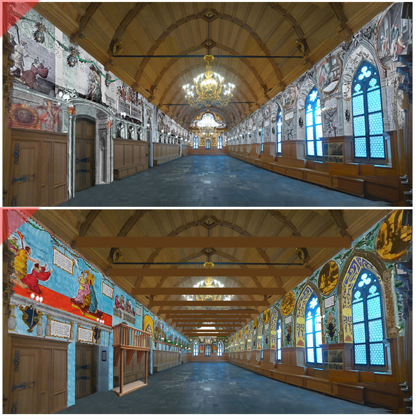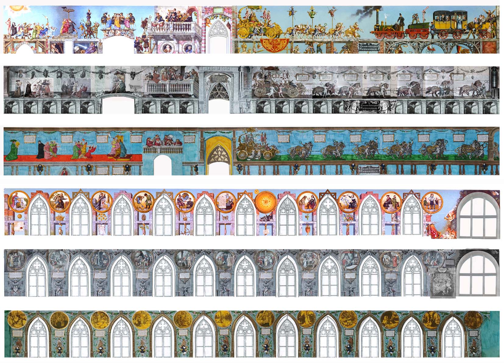Rathaussaal Nürnberg. Dürer-Prechtl-Haggenmiller. 1521. 1989.1905. Vergleiche der Ausmal-Varianten des Nürnberger Rathaussaals. Erstmals ist nun ein direkter optischer Vergleich der Malerei möglich.