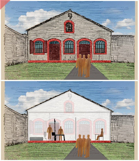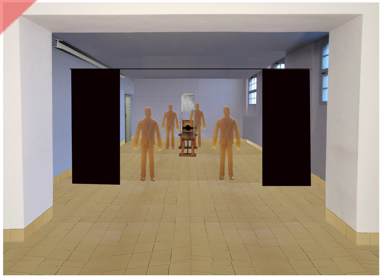 Rekonstruktion des früheren Hinrichtungsraums im Gefängnis ´Roter Ochse´ in Halle/Saale (1942-45). Erstmaliges Zeigen der früheren Optik. Visualisieren mit Figuren.