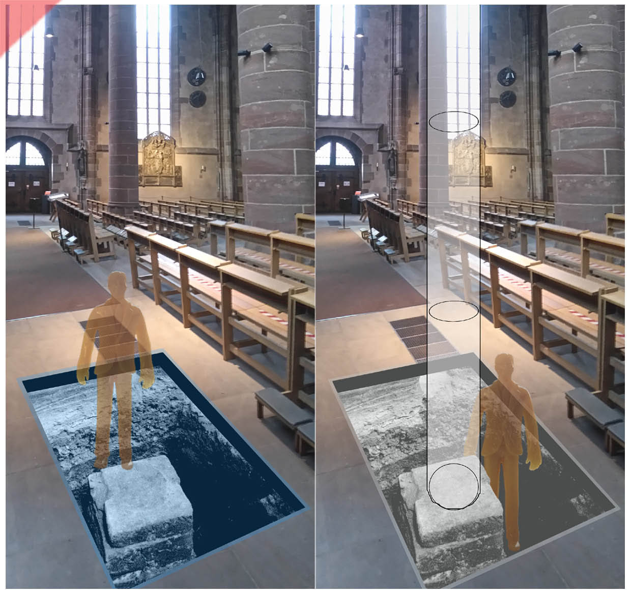 Rekonstruktion des Innenraums der 1519 abgerissenen Regensburger Synagoge am Neupfarrplatz. Einblenden des damaligen Innenraums in die aktuelle Platzsituation.
