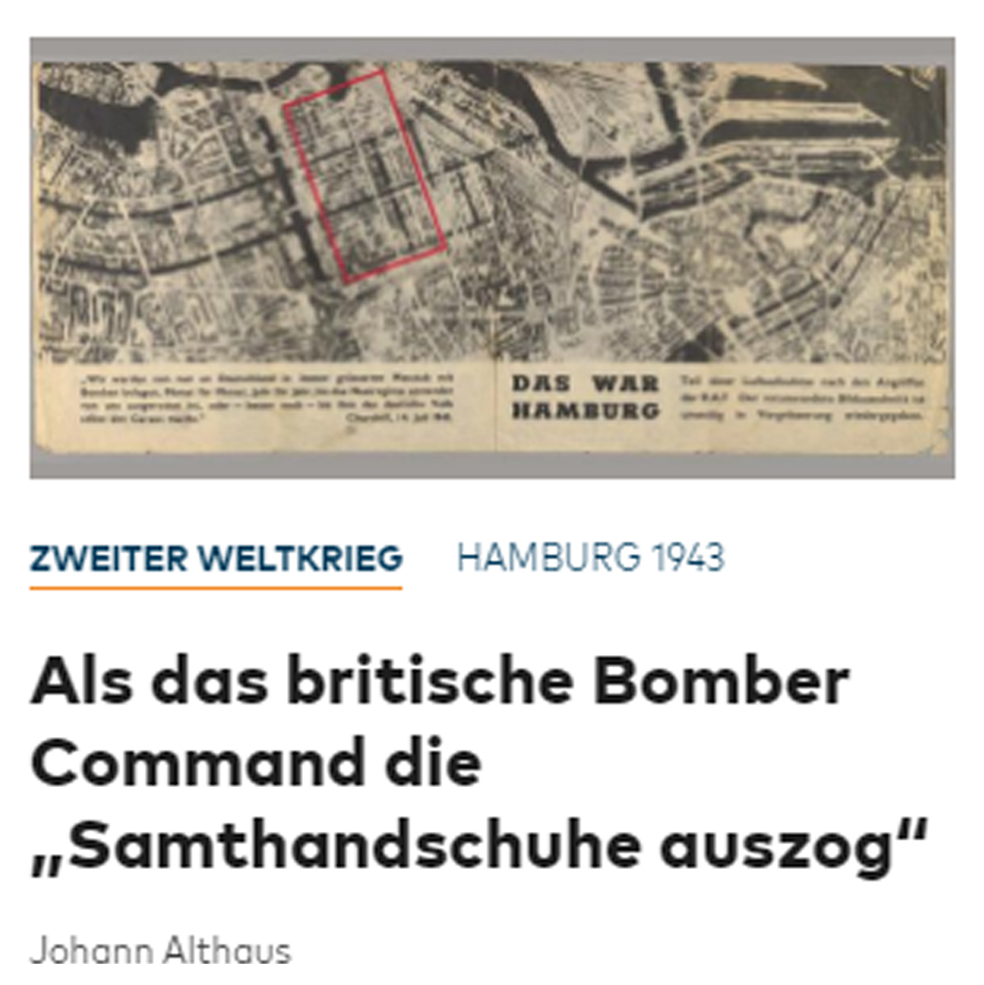 Link 1 (Bericht vom 31.7.2023): https://www.welt.de/geschichte/zweiter-weltkrieg/article246662360/Hamburg-1943-Als-die-RAF-die-Samthandschuhe-auszog.html