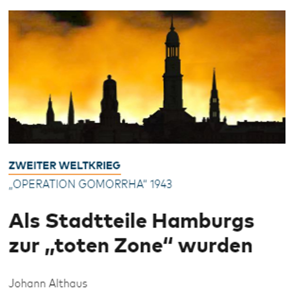 Link 2 (Bericht vom 17.7.2023): https://www.welt.de/geschichte/zweiter-weltkrieg/article246394328/Operation-Gomorrha-1943-Als-Stadtteile-von-Hamburg-zur-toten-Zone-wurden.html