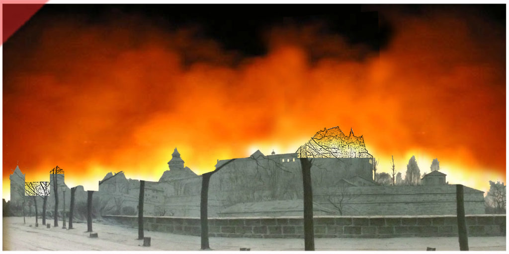 Auschwitz-Birkenau. Überblenden. Damals-Jetzt
