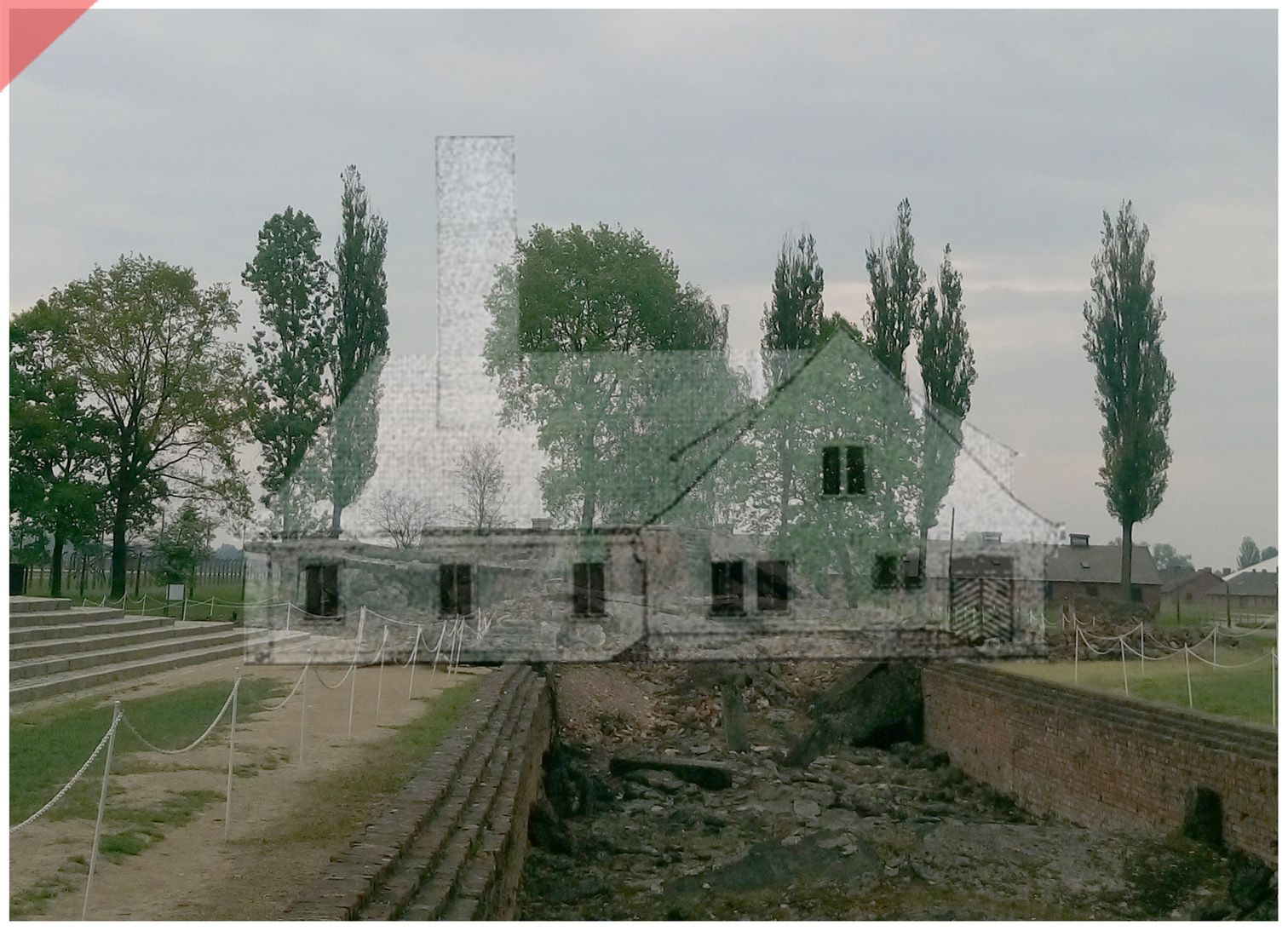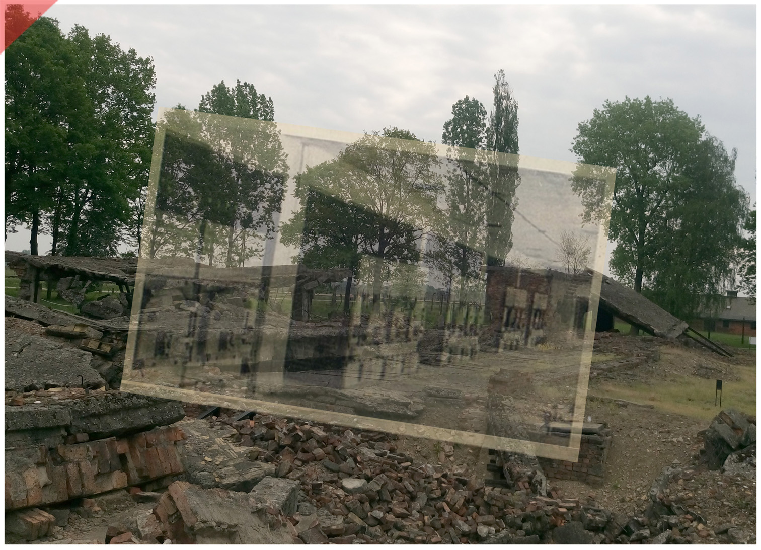 Auschwitz-Birkenau-Krematorium-4-IV-superimpose-now-then-1943-1944-Photo