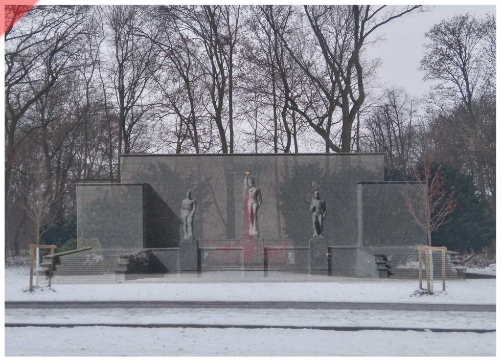 So genau wie möglich fügten wir ein Modellfoto des Brunnens an den geplanten Platz, die Fläche genau hinter der jetzigen „Ehrenhalle“ im Luitpoldhain ein.