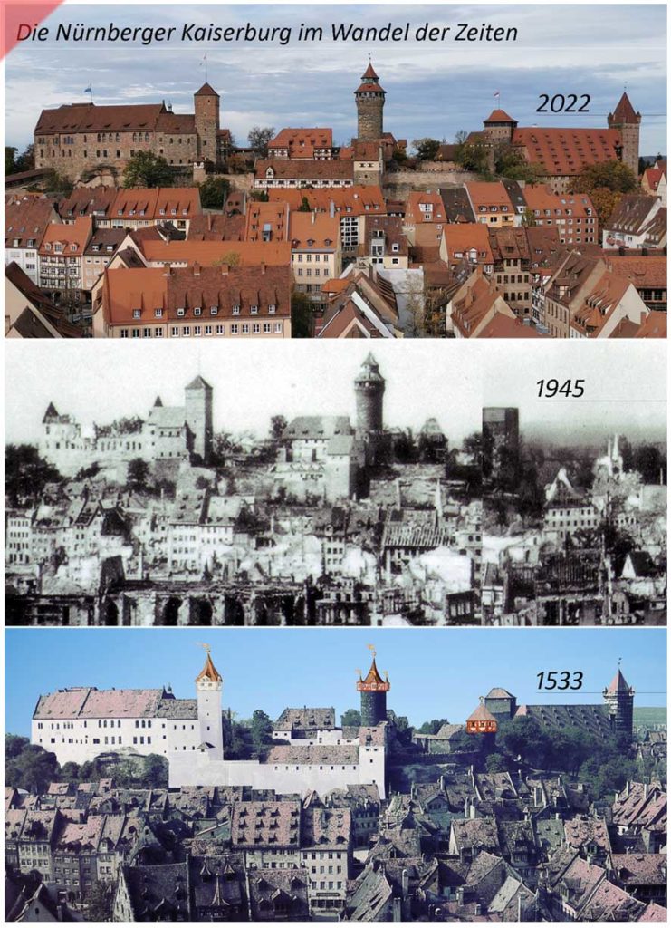 Die Nürnberger Burg. Drei Panoramen im Vergleich. 1533 – 1945 – 2023