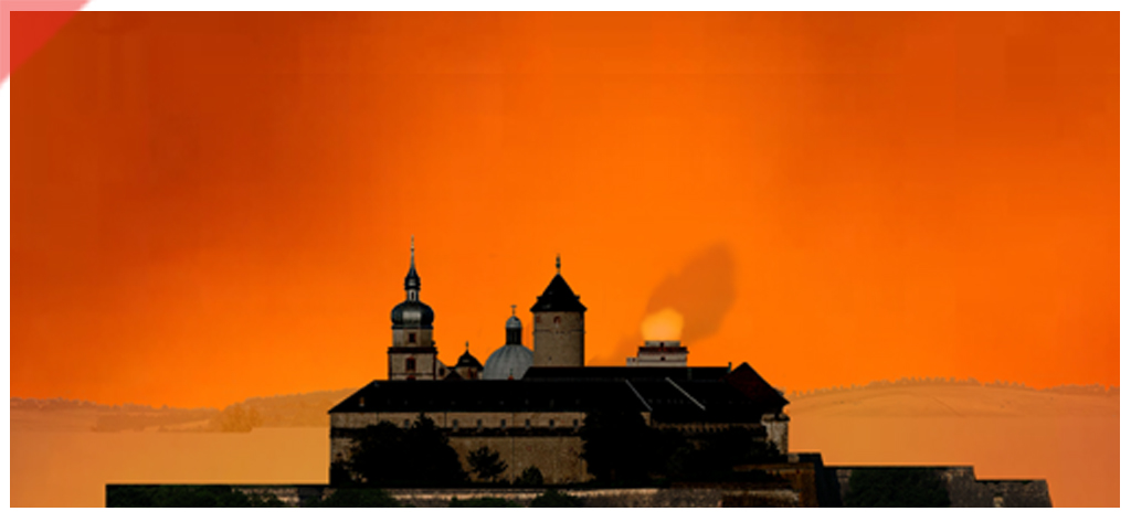 Im Vordergrund ist jeweils die Silhouette der „Festung Marienberg“ zu sehen.
