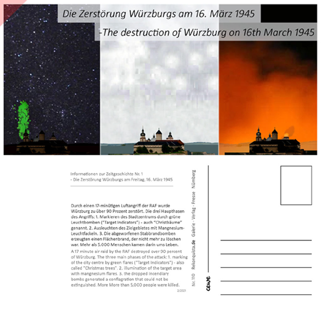Unsere neue Postkarte zum „16. März 1945“ – mit deutschem und englischem Text. Im DIN lang-Format (21 x 10,5 cm). Auf der Rückseite mit Informationen zum Angriff. In unserem Shop erhältlich. Hier nur mit einer Vorschau-Auflösung.