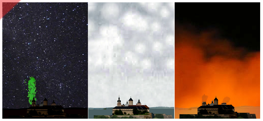 Von links nach rechts (die drei Haupt-Phasen des Luftangriffs):
