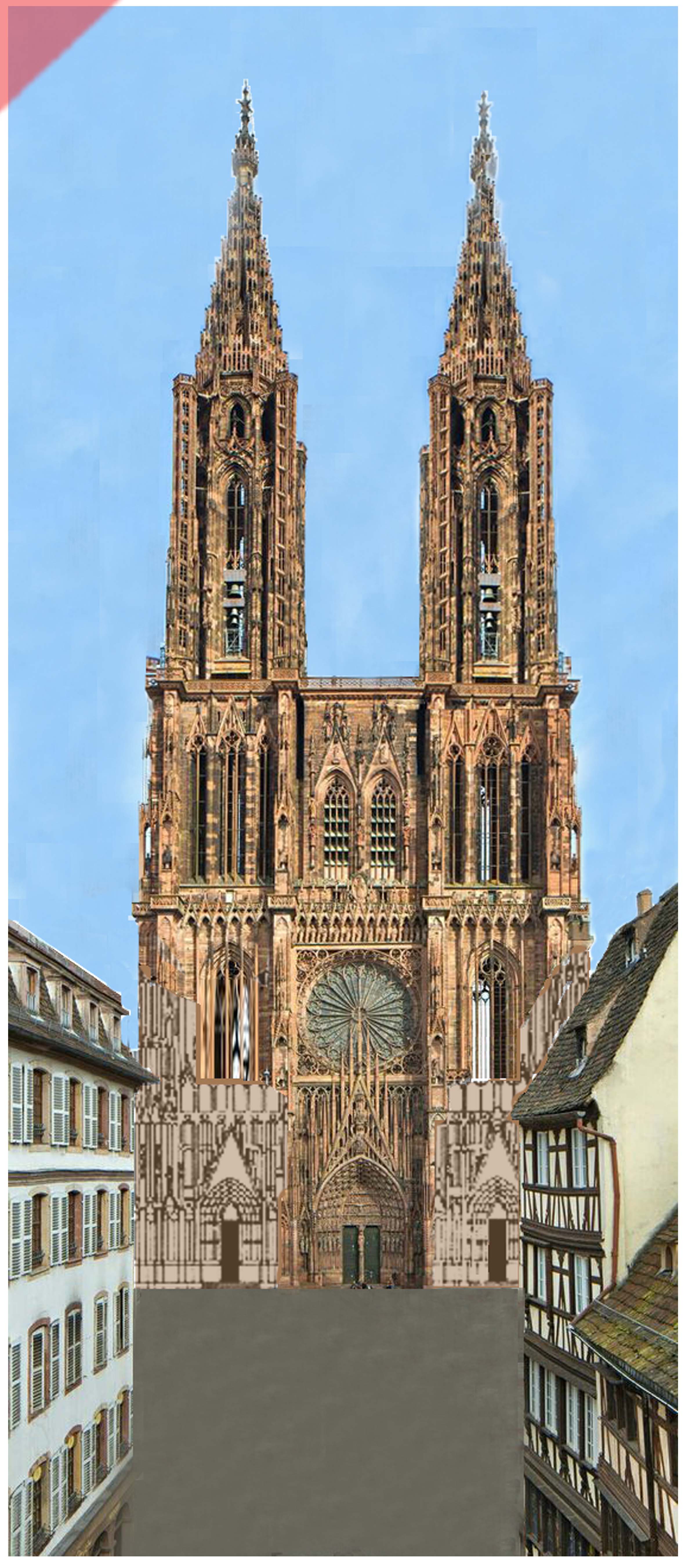 Strassburg-Strassburg-Kathedrale-Westfassade-Panorama-3-Fassaden-geplant-zwei-2-Tuerme