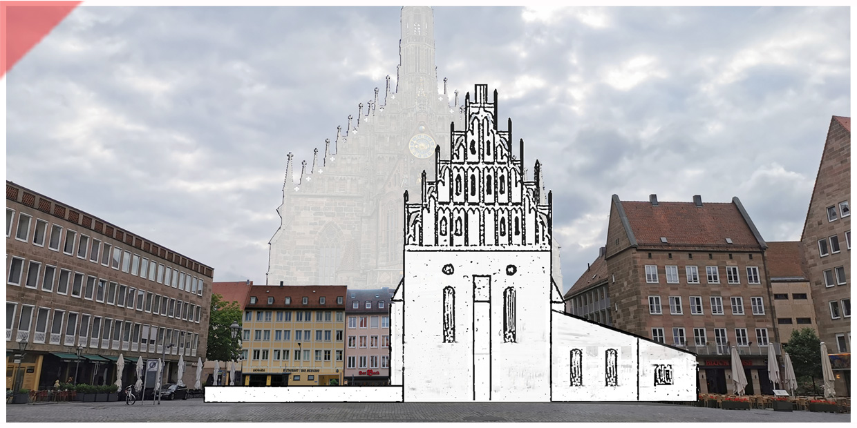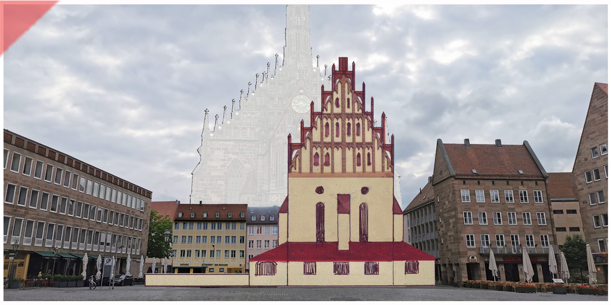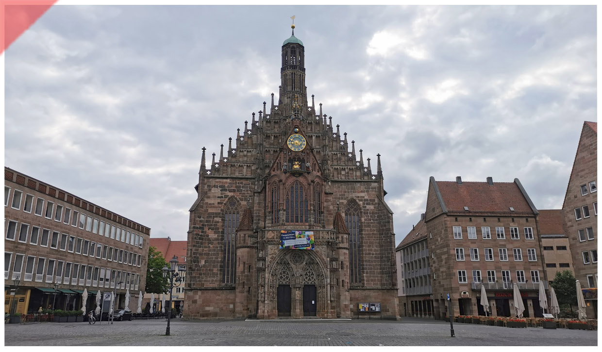 Für unsere Visualisierungen entfernten wir die Nürnberger ´Frauenkirche´ auf dem Foto des Jahres 2023. Die Westfassade der Kirche ist als helle weiße Fläche noch zu erkennen.