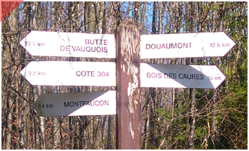 Auf der Kuppe der Höhe „Toter Mann“ ist dieses Entfernungsschild zu sehen.