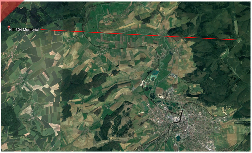 Hoehe-cote-hill-304-1916-Schlacht-von-Verdun-Google-Earth-Richtungsbalken-nach-Verdun-Blick-nach-Verdun-Fort-Douaumont
