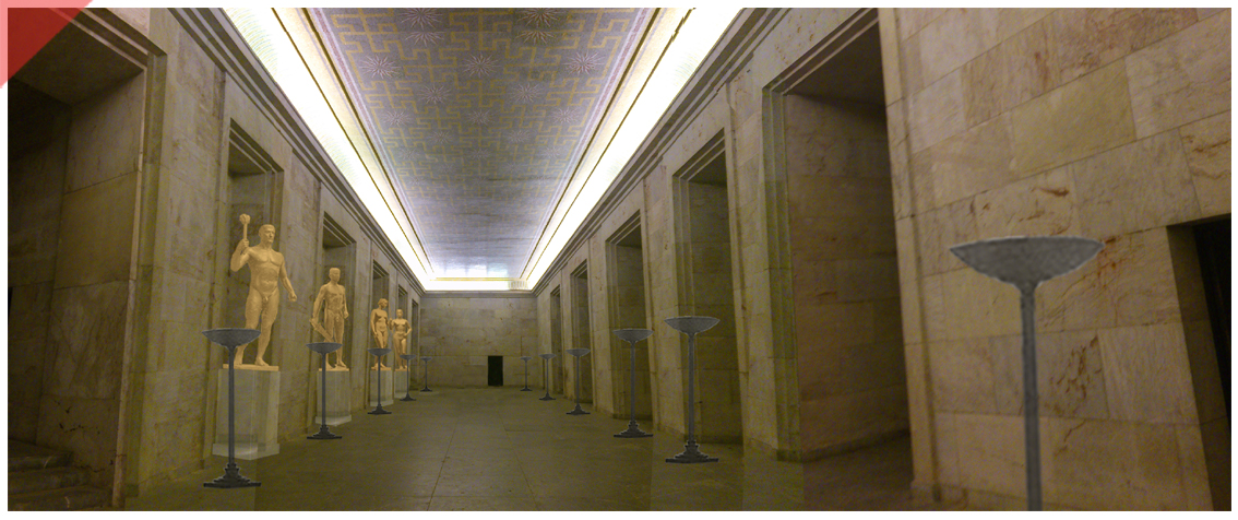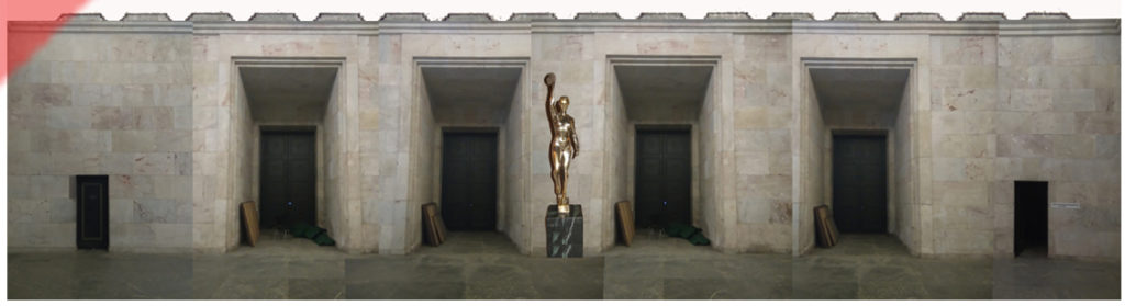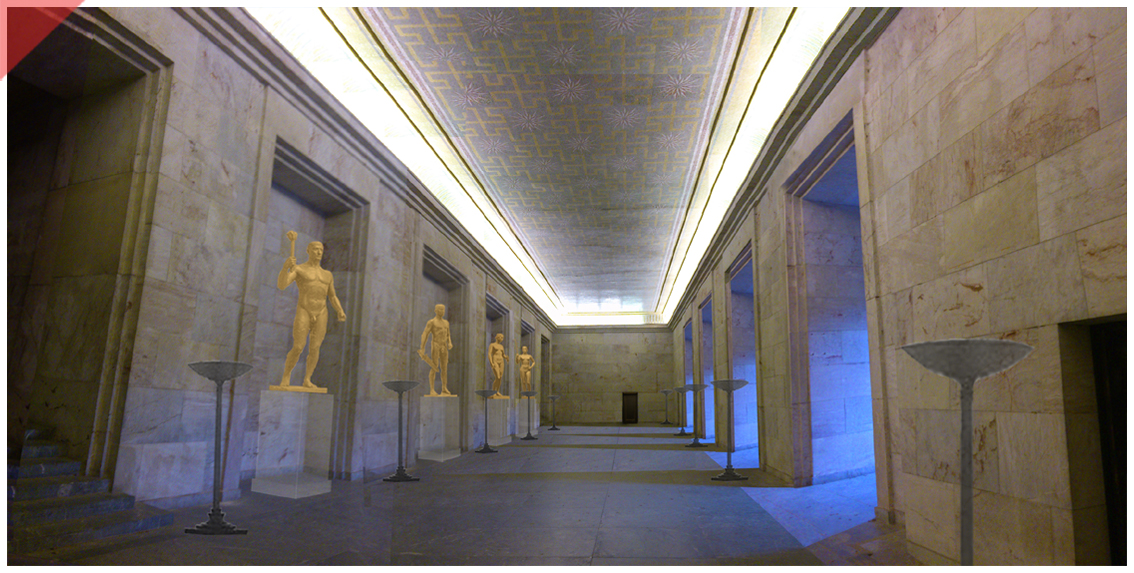 Das Raumpanorama von der anderen Blickachse aus. Die Figuren „Sieg“ und „Kampf“ können so näher betrachtet werden.